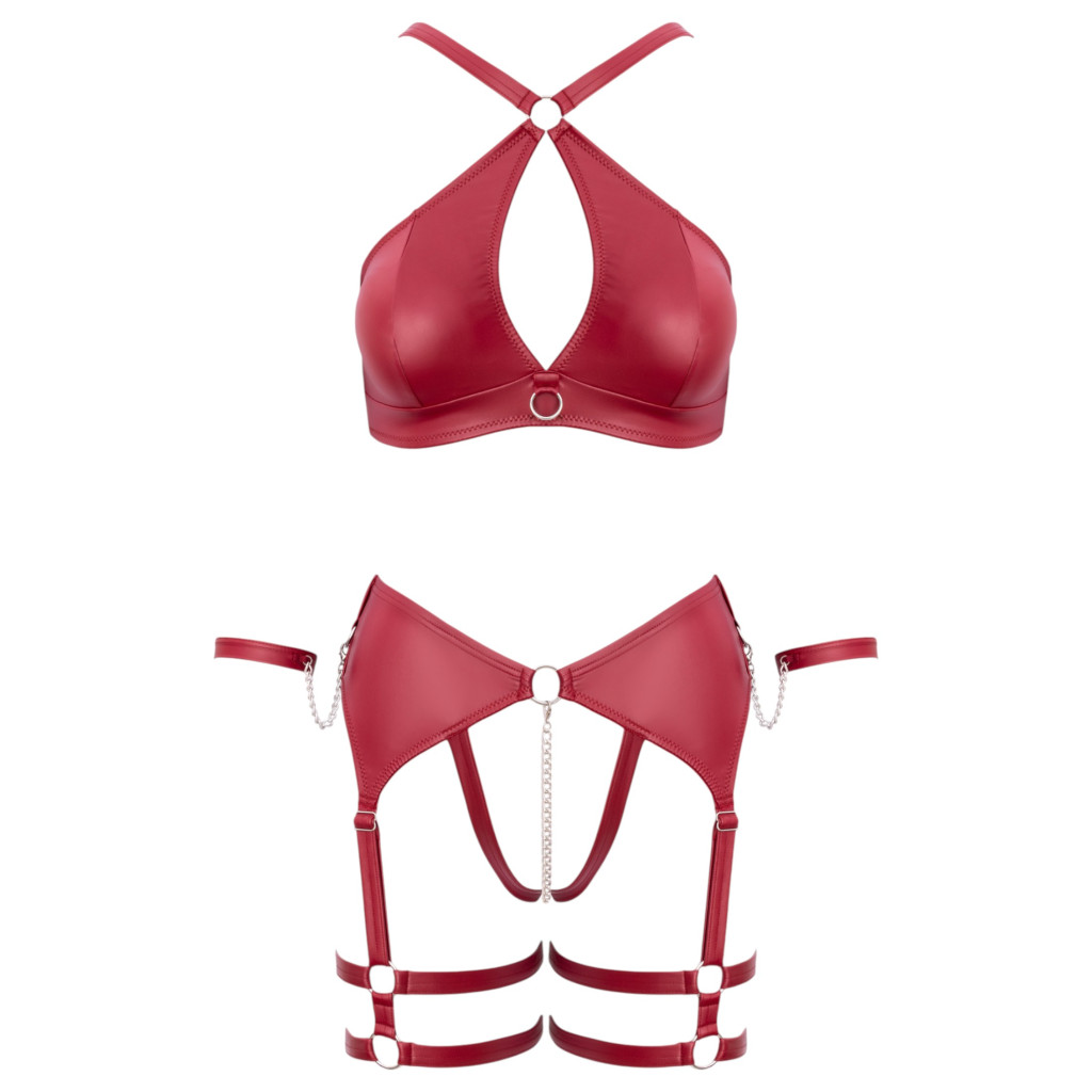 Cottelli Bondage - keresztpántos melltartó szett (piros)