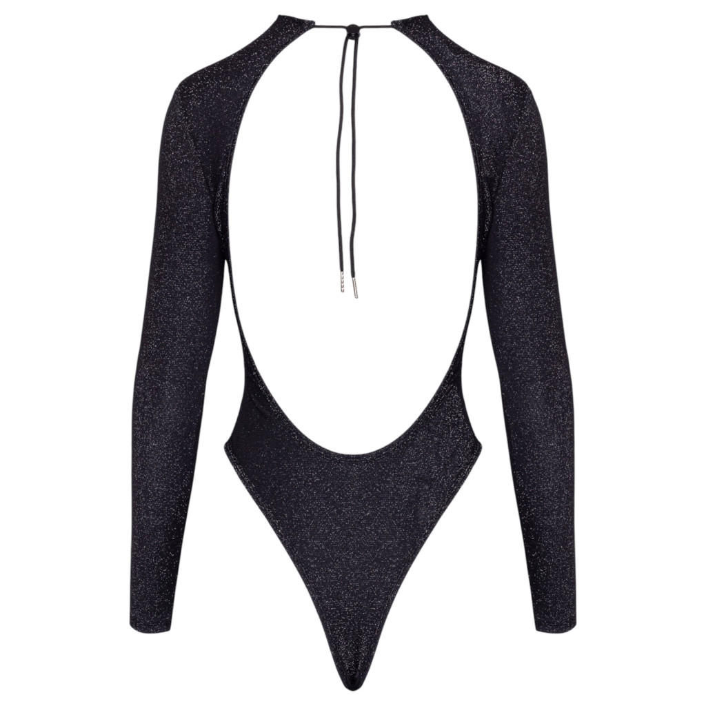 Cottelli - nyitott hátú, csillogós body (fekete)